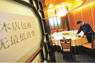 記者探訪發現,一些飯店取消了包間最低消費,也不限制就餐人數,但是改成了收取服務費,某餐館就表示標間要收取10%的服務費。