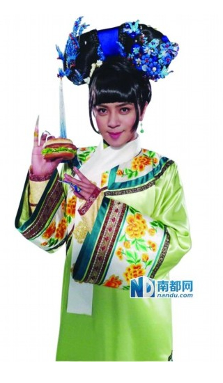 羅志祥接拍食品廣告 扮清朝娘娘手拿漢堡(圖)
