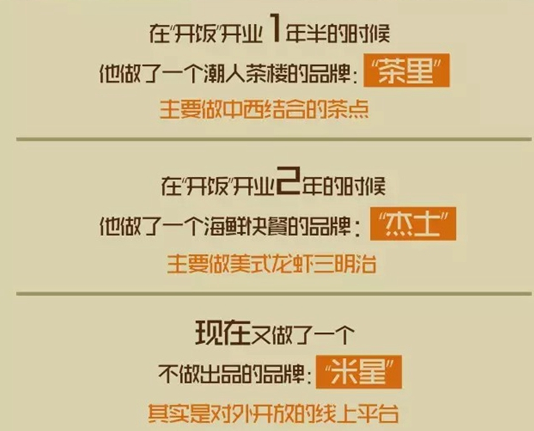 從快時尚餐飲“開飯”,到潮人茶樓“茶里”,海鮮快餐“杰士,再到互聯網餐飲“米星”,Hoi Group看起來做了那么多品牌,做了那么革新。但其實都做一件事,那就是——細分餐飲市場的用戶需求。