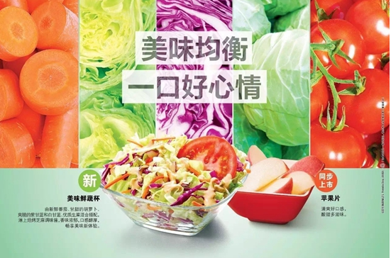 麥當勞店中宣傳圖片里,兒童餐部分只能看到玉米杯、牛奶搭配漢堡,是不會出現(xiàn)薯條和碳酸飲料的圖片的(當然,你家孩子要是拍桌子要吃,你也還是能點得到),這和他們從2013年開始的全球宣傳策略保持一致。和孩子互動的“麥當勞叔叔”是不能接觸產(chǎn)品、推薦產(chǎn)品,也是希望借此能夠對兒童膳食有所“管控”。今年5月28日開始,蘋果片在中國的北上廣深津五座城市推出,同期全國也會上市美味鮮蔬杯,雖然微信公眾號的推廣文章中,玩具仍然寫在最開頭,但緊接著就是這兩款新品,也預示著這個品牌今年在健康兒童餐上也許會有更多的動作。