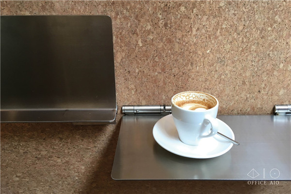 墻邊的不銹鋼板適合趕時間的顧客站立享用飲品,或等待時使用;吧臺延伸到門外的平臺,也為戶外提供了座位/站位。店中座椅選擇了高腳皮椅,店外水泥平臺上特意劃分了不在主動線上的兩個區(qū)塊,以不銹鋼板覆蓋,變成了應(yīng)付過多客流的臺階座位。說實話都不是“久坐之處”,這樣設(shè)計明確的空間,客人自然不會當(dāng)它是“閑來無事躺上半天”的地方。