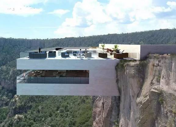 顧客吃飯要玩心跳,有什么辦法?土豪式的空中餐廳太危險,那么在懸崖上“懸空”的餐廳怎么樣?