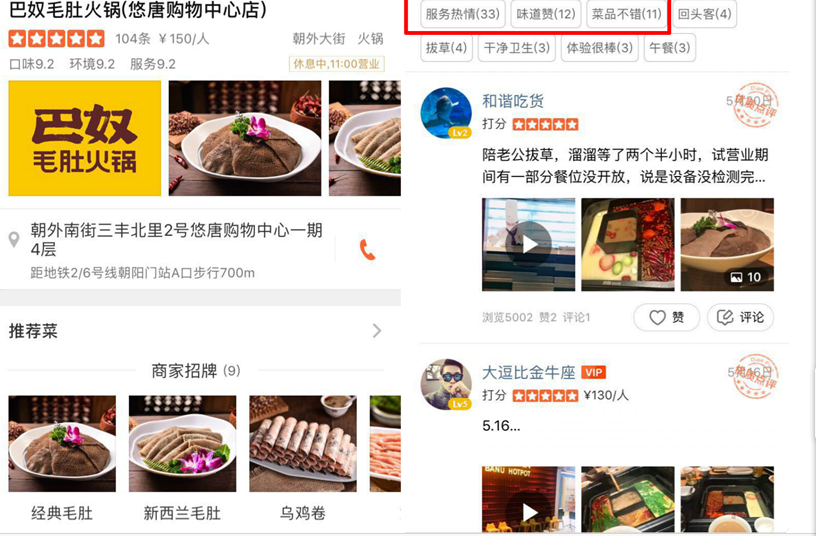 ▲巴奴大眾點(diǎn)評(píng)評(píng)價(jià)