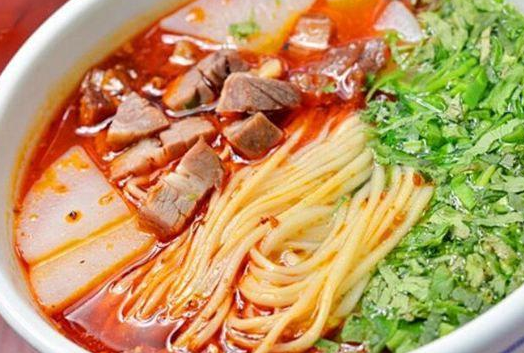 “蘭州拉面”又稱“蘭州清湯牛肉面”,后經傳承改進,以一清(湯清)、二白(蘿卜白)、三紅(辣椒油紅)、四綠(香菜、蒜苗綠)、五黃(面條黃亮)統一了蘭州牛肉面的標準。
